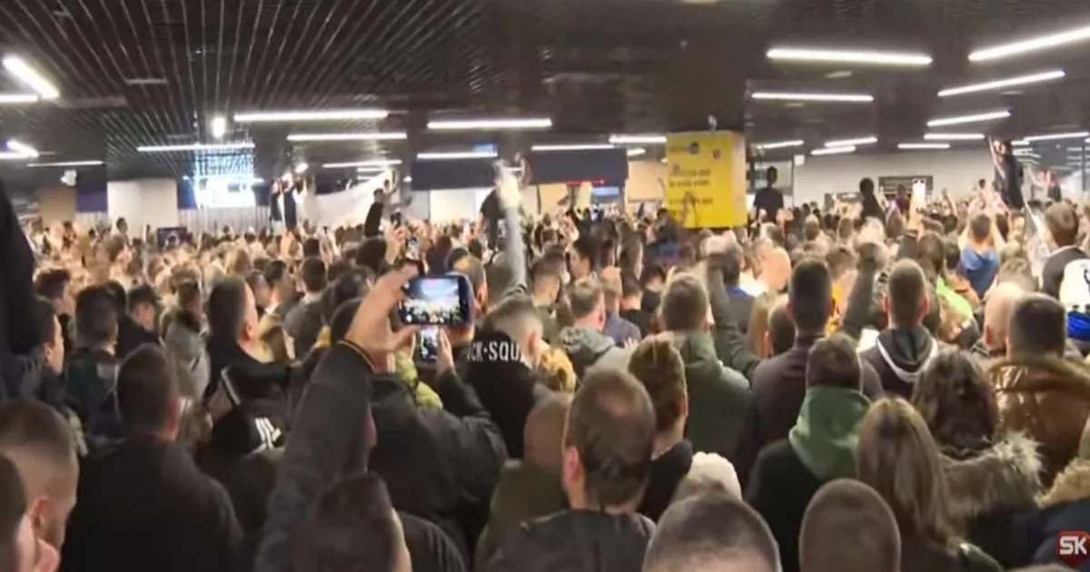 Εντυπωσιακές εικόνες στο αεροδρόμιο “Νίκολα Τέσλα”, όπου χιλιάδες φίλοι της Παρτίζαν συγκεντρώθηκαν για να υποδεχτούν τον Ζέλιμιρ Ομπράντοβιτς και να τον στηρίξουν μετά την παραίτησή του.