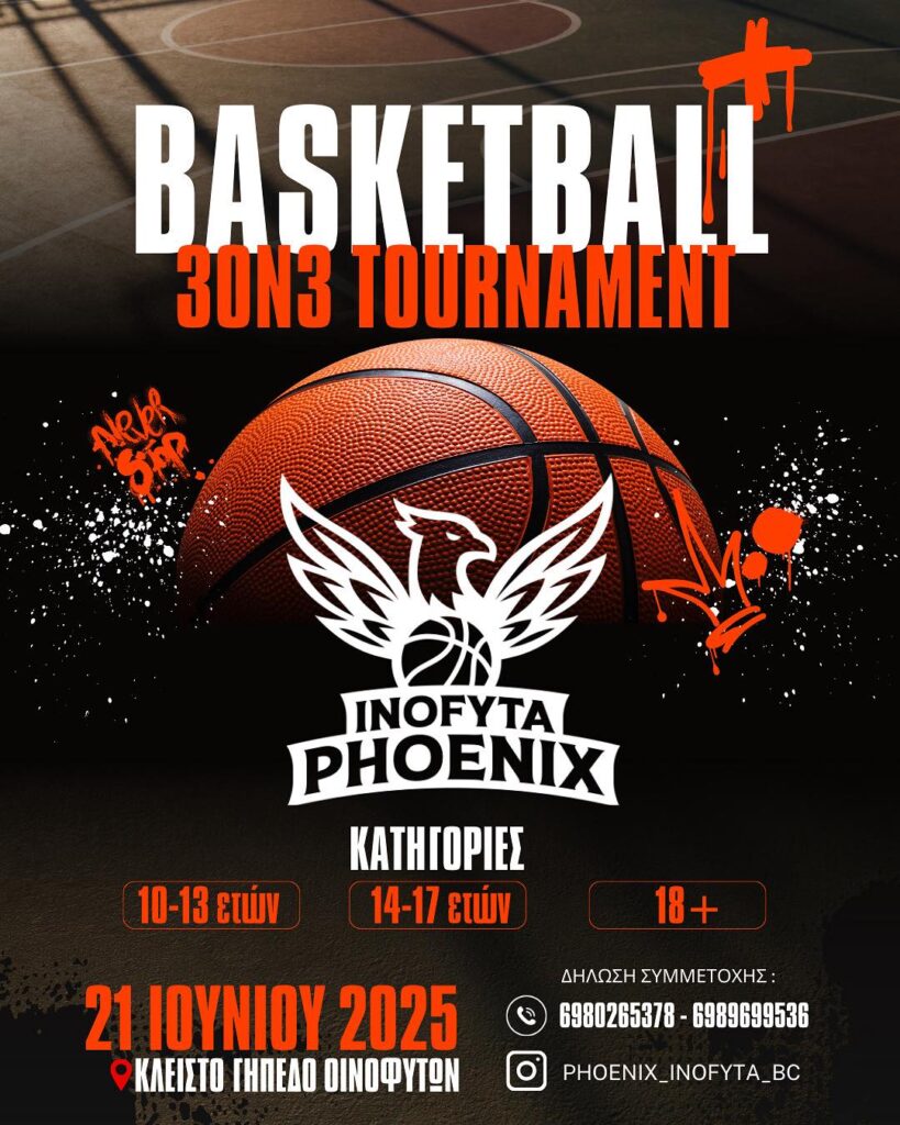 Οι Φοίνικες Οινοφύτων διοργανώνουν τουρνουά 3on3 στο νέο Κλειστό Γήπεδο Οινοφύτων και το StereaSports.gr θα το καλύψει μέσα από την ιστοσελίδα του.